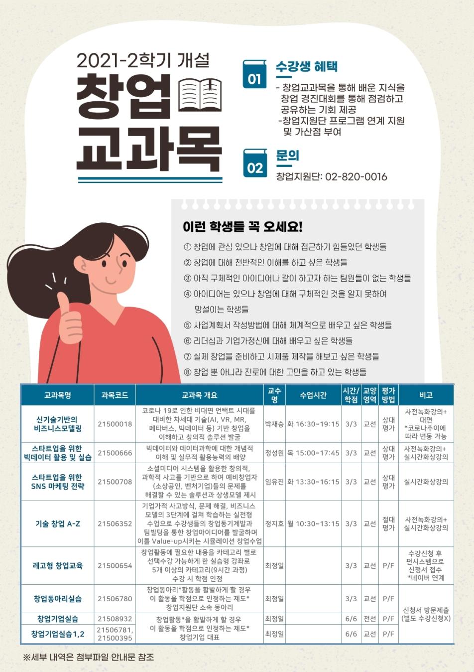 2021-2학기 창업교과목 개설 안내