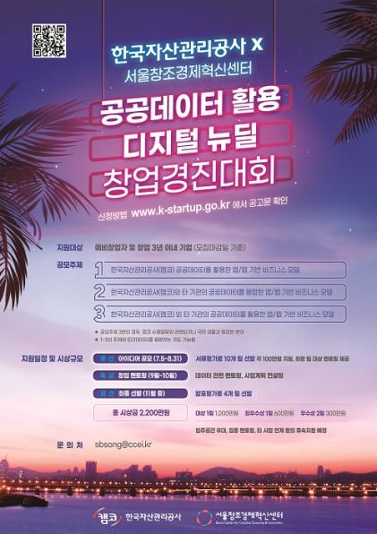 한국자산관리공사(캠코)와 서울창조경제혁신센터에서는 정부의 공공데이터를 활용한 민간의 창의적 아이디어 및 신규 비즈니스 발굴을 위한 「공공데이터 활용 디지털뉴딜 창업경진대회」에 참여할 (예비)창업자를 모집합니다
