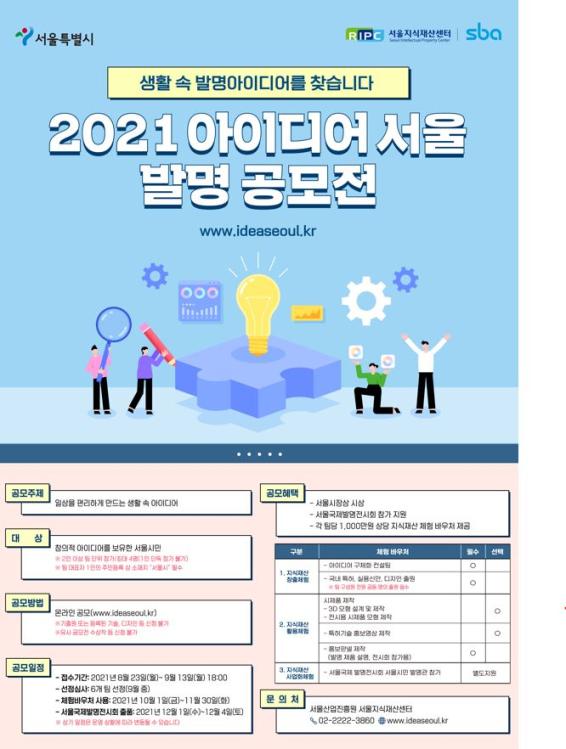 『2021년 아이디어 서울 발명공모전』을 아래와 같이 시행합니다. 창의적인 아이디어를 가진 서울시민 여러분의 많은 참여 바랍니다.