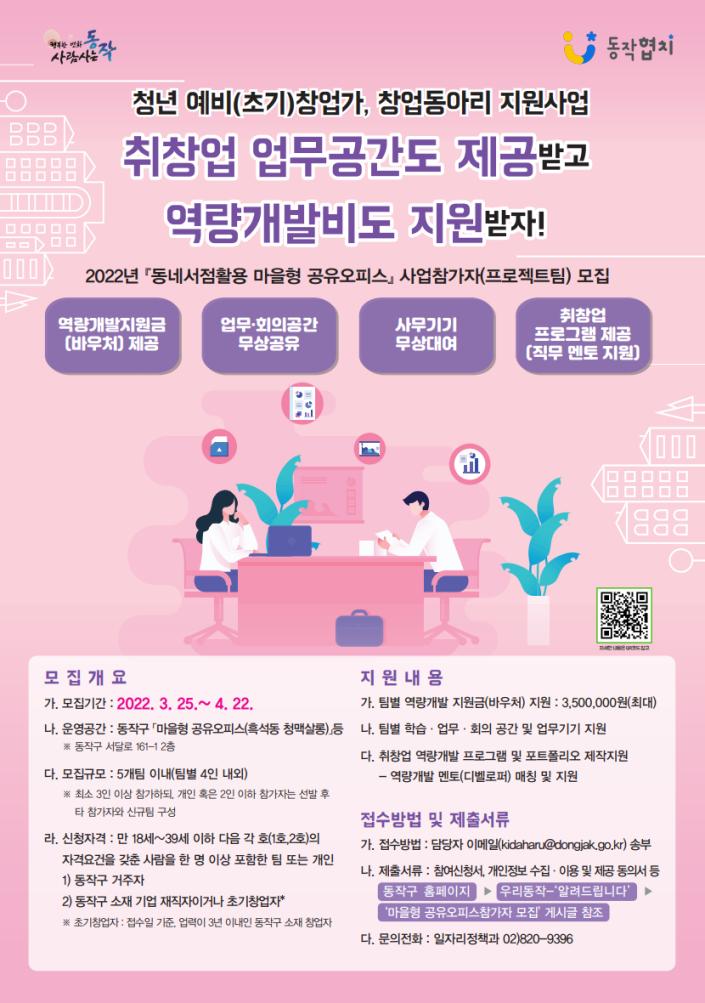 ★마을형 공유오피스사업「청년 창업지원」사업참가자 모집 안내(동작구 지역 청년)