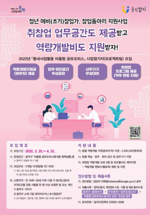 2022년『동네서점활용 마을형 공유오피스』 프로젝트형 청년 창업지원사업 참가자(창업팀) 공개모집 안내2022.04.07다음글