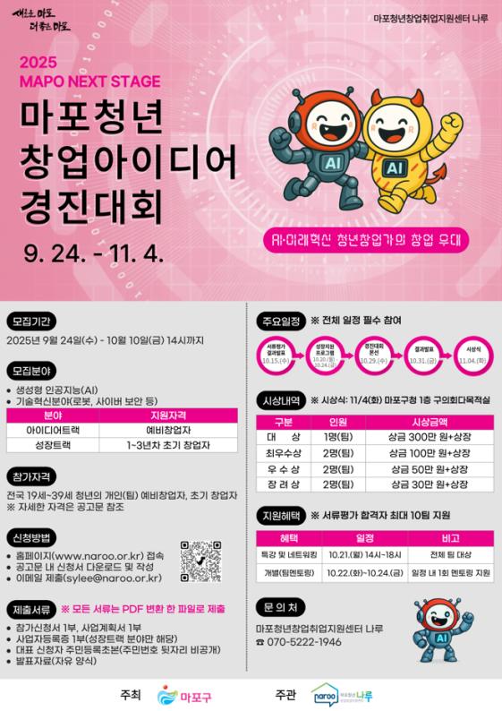 5. 문의처: 마포청년창업취업지원센터 나루 ☎070-5222-1946 / sylee@naroo.or.kr