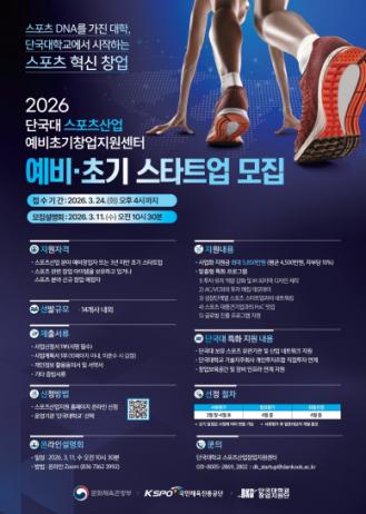 가. 모집명 : 2026년 스포츠산업 예비초기창업지원(주관기관 : 단국대학교)